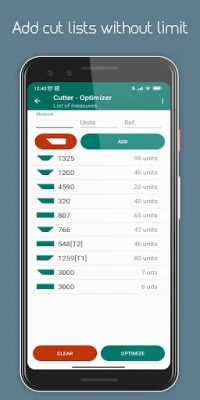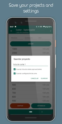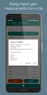 * Personalize your cuts: Save lists of measurements with names, easily retrieve them, or import your own files.