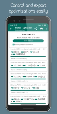 * Share and export: Send your optimizations by email, messaging, or export them in PDF to print or save.