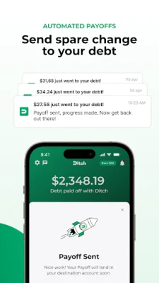 Debt sucks, but paying it off doesn't have to. With Ditch, every purchase you make brings you closer to debt-free—no stress, no spreadsheets, no overthinking. Just effortless Payoffs that chip away at your debt while you live your life.