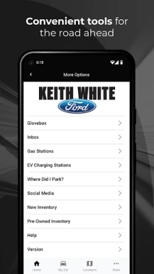 Other features include: Detailed Vehicle Specifications Document Keeper Recommended Maintenance MPG Calculator Parked Car Finder QR Code and VIN Barcode scanner New and pre-owned inventory Contact the Dealership Directions to Dealership
