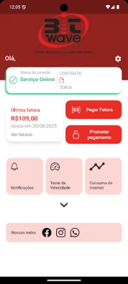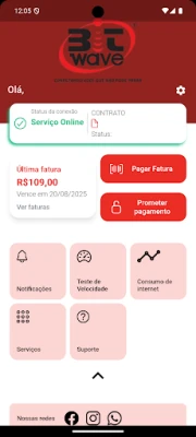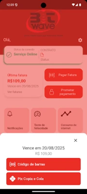 Obter segunda via de fatura. Ver todo o histórico financeiro. Solicitar Suporte. Fazer promessa de pagamento. Receber notificações.