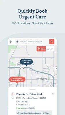 Conveniently find the NextCare clinic nearest you. Just put in your zip code, or enable your location settings and NextCare Anywhere will tell you what clinics are nearby and how many people are currently waiting in line to be seen.