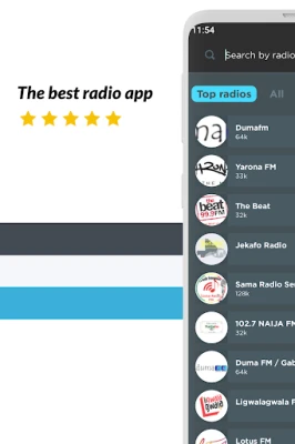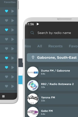 Listen to all your favorite radio stations like Gabz 96.2, Duma, RB1, RB2, RERA Online Christian, Sportsnation, I 102.2, Sankofa, RFI, Yarona, JazzySoul Nata, The Beat, Tygerberg, Okay, Africa N°1 and many more! And no matter what city or country you are in, you can listen to your favorite local radio station from anywhere in the world!