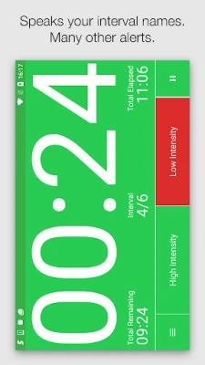 The text to speech option will speak your interval names as you get to them, or even give you some advance warning. Alternatively, you can choose from the built in alerts. These ranges from simple beeps, to MMA air horns and boxing bells, to bells and gongs for more relaxing timers.