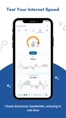 3- ***Router Speed Test (Internet meter):*** The application contains a router speed test mechanism for your WiFi router, it will calculate the actual Internet Speed, which is the real received internet (broadband Speed) plus download speed, and supports three speed tests length, also you can revise your internet speed test history.