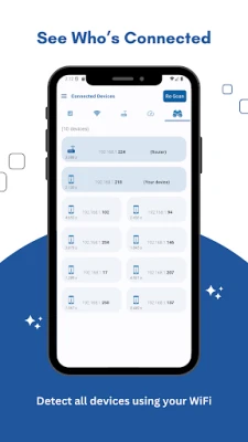 4-*** Who is using your WiFi, network Devices Discover:*** Have you ever asked yourself, who use my router network? The application will scan the network for you and detect who is connected to your router, by the IP address and MAC address.